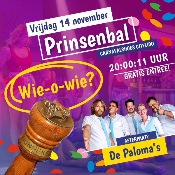 14 NovPrinsenbal Met o.a. het aftuigen van Stadsprins Dirk en adjudant Mart en de onthulling van de nieuwe Stadsprins & Adjudant!